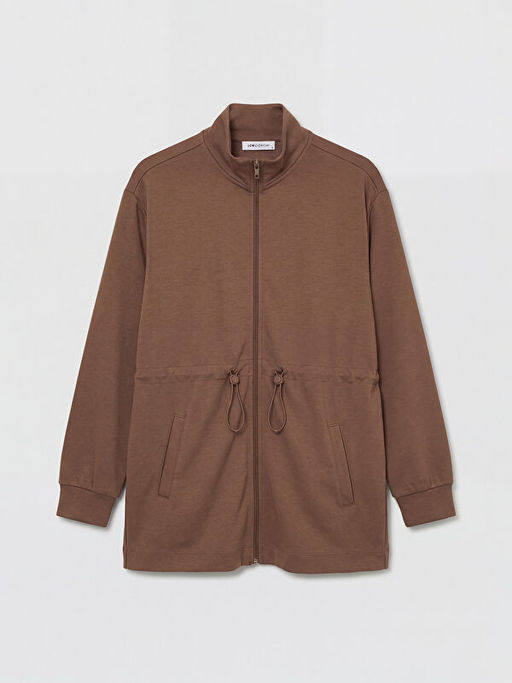 Dik Yaka B?zg?l? Kad?n Fermuarl? Sweatshirt