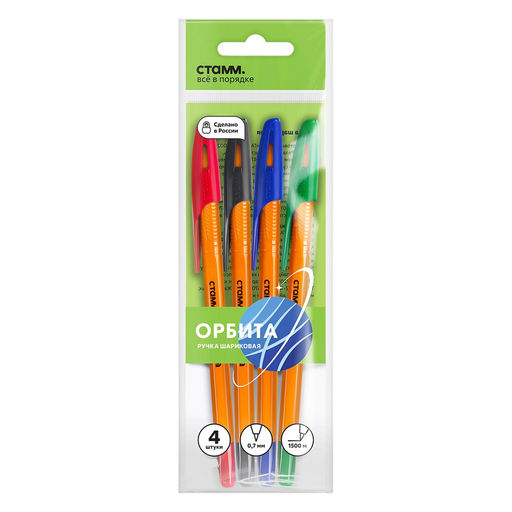 • Набор ручек шар. "СТАММ Орбита 100" 4цв. (РШ-32386-4) 0.7мм, оранжевый корпус