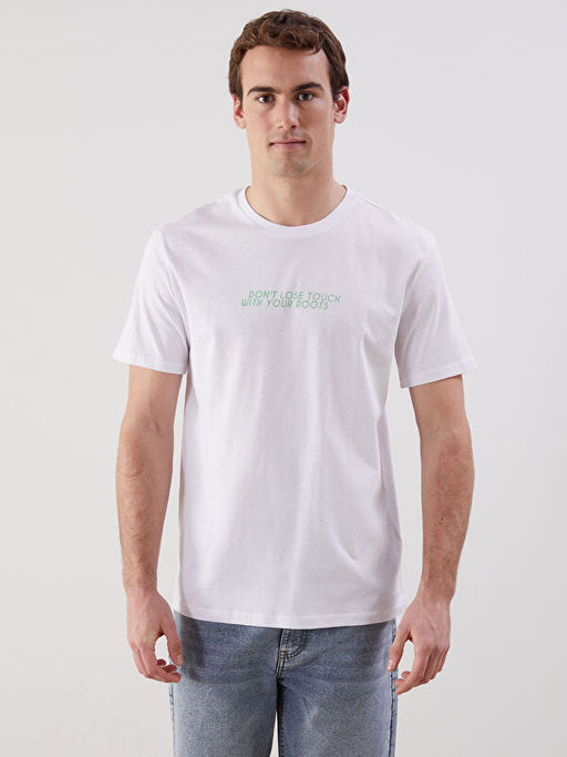 • Bisiklet Yaka K?sa Kollu Bask?l? Penye Erkek Ti??rt