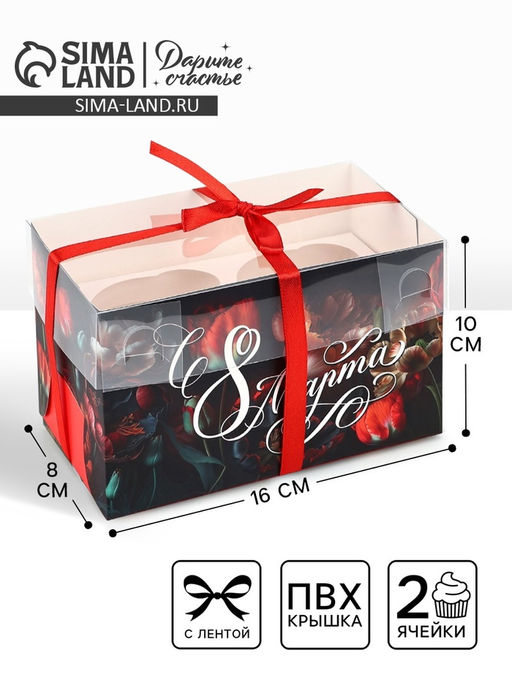Цена за 5 шт. Коробка для капкейка 8 марта, 16?8?10 см