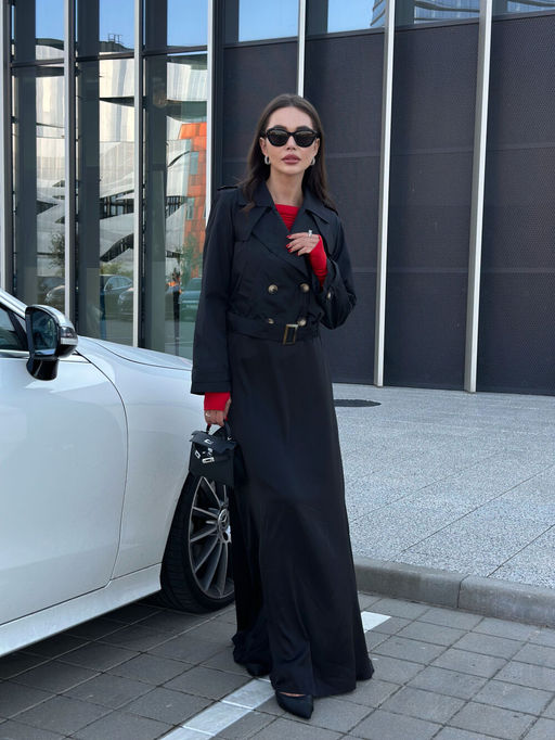 Юбка в длине макси, выполнена из струящегося синтетического шелка, форма годе, пояс обработан широкой резинкой.­