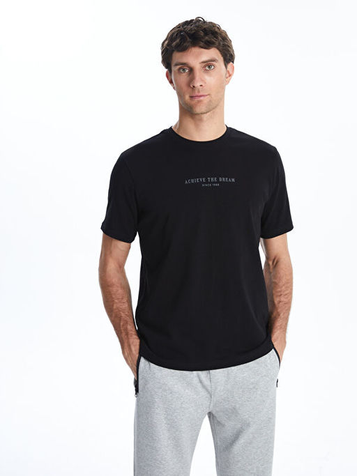 Bisiklet Yaka Bask?l? Erkek Ti??rt