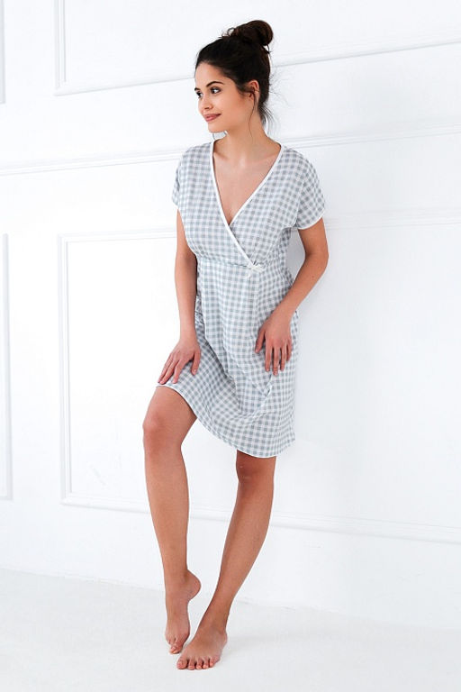 Сорочка Octavia в клетку с короткими рукавами и кантом на поясе, горловине и рукавах. Элемент декора - бантик на поясе. Идеальный вариант не только для сна, но и для домашнего отдыха.­