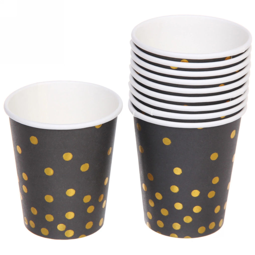 Стакан бумажный 0,2л в наборе 10 шт "Конфетти" черный­
