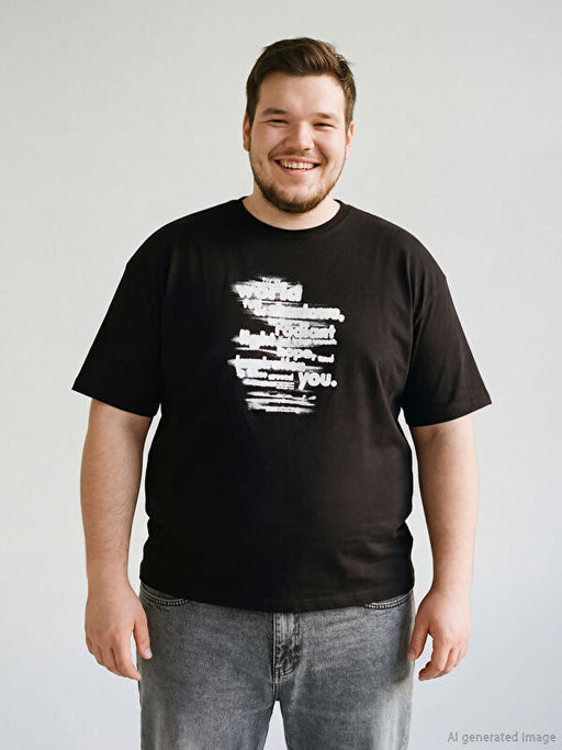 B?y?k Beden Bisiklet Yaka Bask?l? Erkek Ti??rt