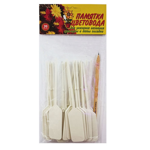 В комплект входит 20 пластмассовых указателей цветовода и мягкий простой карандаш с ластиком. Для записи любой полезной информации о высаженных вами растениях.