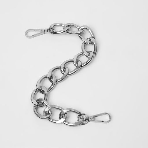 • Цена за 2 шт. Цепочка для сумки, с карабинами, металлическая, плоская, 29×19 мм, 30 см, цвет серебряный