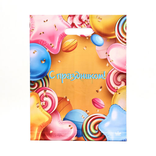 • Цена за 50 шт. Пакет «С праздником», полиэтиленовый с вырубной ручкой, 30×39.5 см, 60 мкм