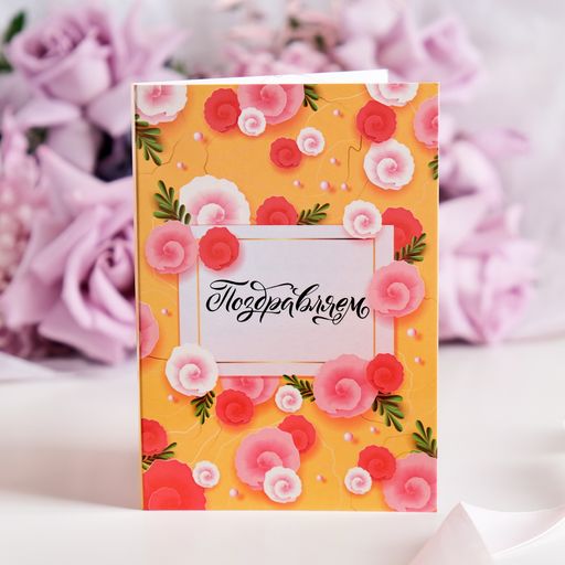 • Открытка 4 шоколадки "Поздравляем (желтая с розовыми цветами)"