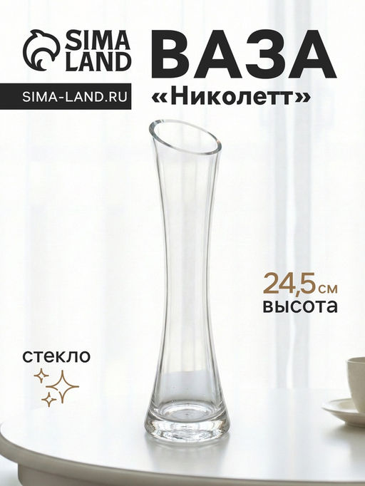 Ваза Николетт, 24.5?6.5 см, стекло, прозрачная