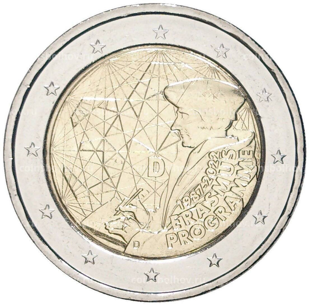 • Монета 2 евро 2022 года D Германия 35 лет программе Эразмус
