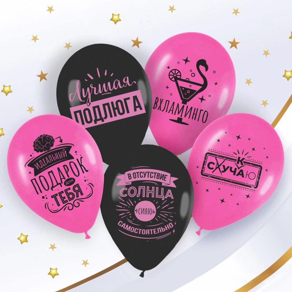 • Воздушные шары "Лучшей подружке" 50 шт, 12"/30см (розовый/черный)