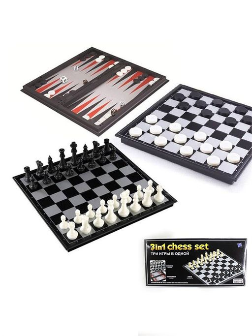 Шахматы, шашки, нарды, 3 в 1, магнитные, размер поля 33*33см (9818/3034) "High Quality", доска и фигуры пластиковые