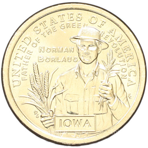 Монета 1 доллар 2026 года D США Американские инновации Айова. Норман Борлоуг (отец Зеленой революции)