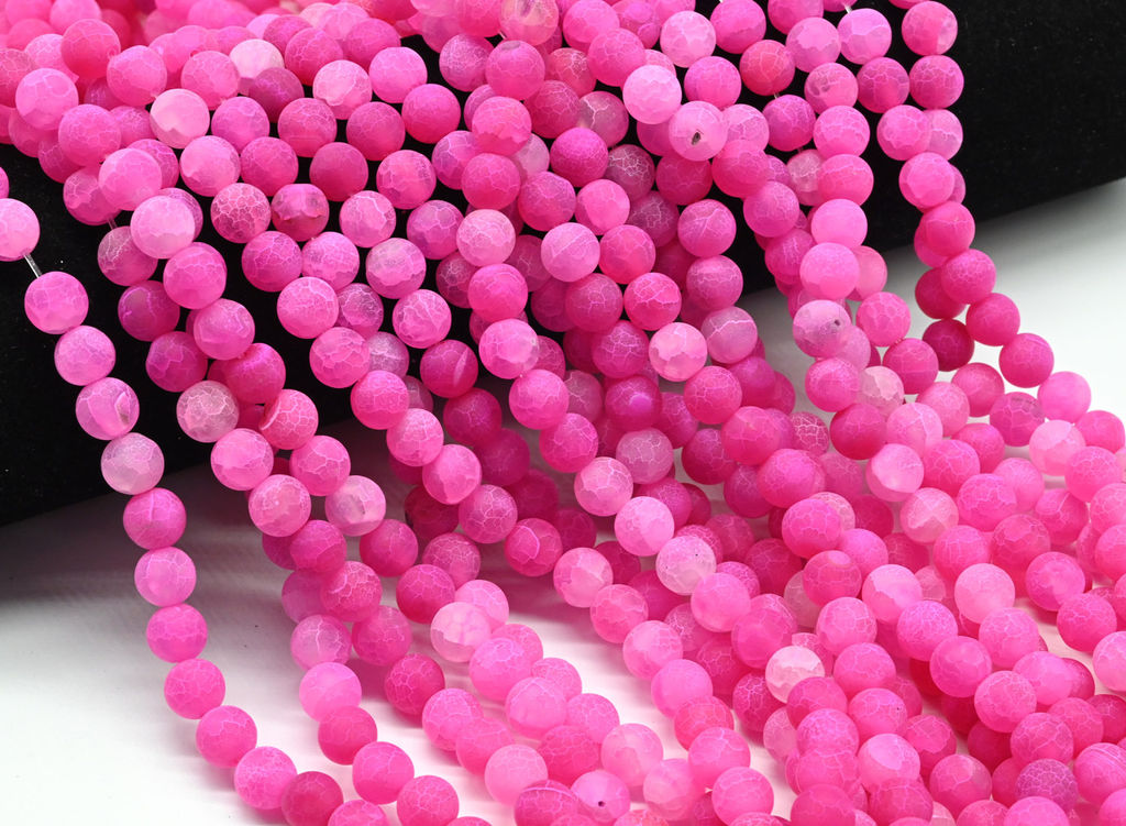 Бусины из агата Вены Дракона шарик 8мм цвет фуксия матовый, 37см, 48 бусин Радуга камня