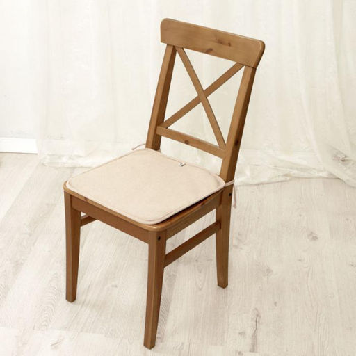- Крепится к корпусу стула шнурами-завязками из окантовки.
