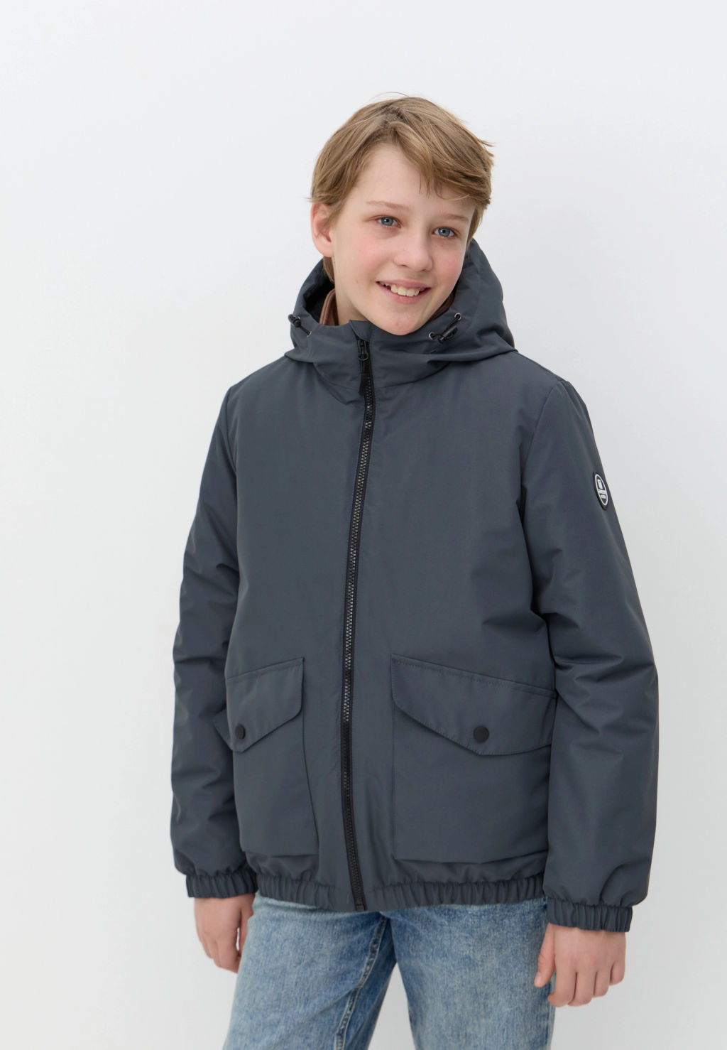 Демисезонная куртка для мальчика, с втачным капюшоном и открытой центральной молнией. На центральной части капюшона хлястик и липучка для регулировки. По низу рукавов и по низу куртки резинка. Подкладка из флиса с утеплителем.­