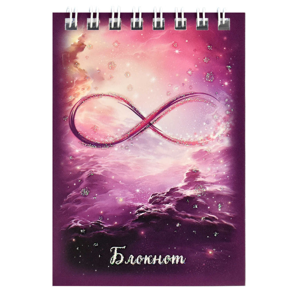 Блокнот, А7, 40 л, арт. 68165 БЕСКОНЕЧНОСТЬ / Блок - белый офсет 60 г/м?, клетка, гребень по короткой стороне, УФ-лак выборочный с глиттером,