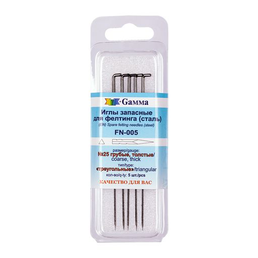 • Gamma FN-005 Иглы для валяния (фелтинга) запасные в пластиковой упаковке с европодвесом 5 шт №25 грубые, толстые