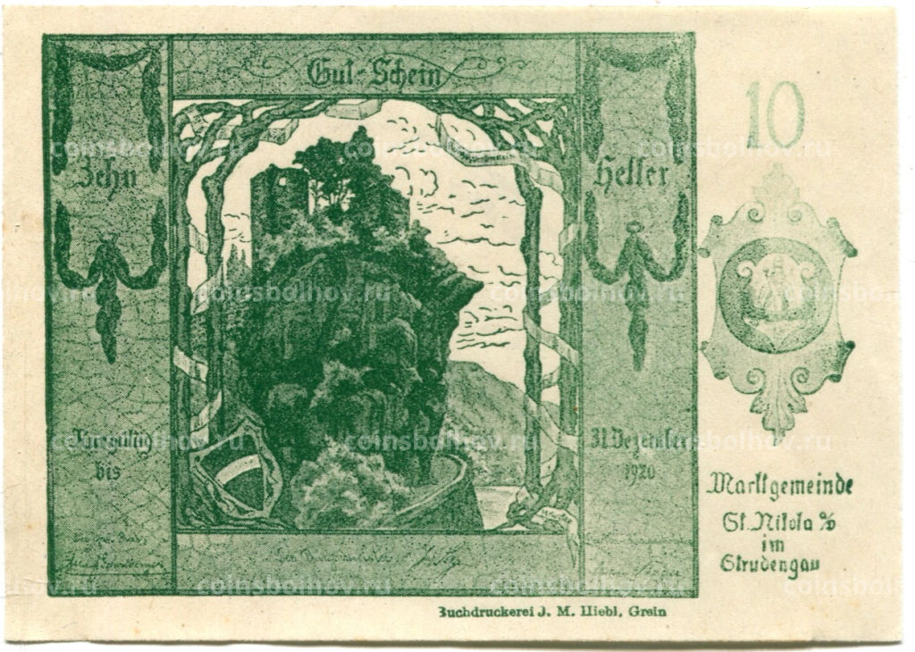 Банкнота 10 геллеров 1920 года Австрия Санкт-Никола на Дунае (нотгельд)