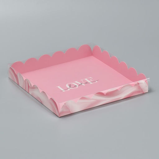 Цена за 5 шт. Коробка для печенья, кондитерская упаковка с пластиковой крышкой, «Шёлковая любовь», 21×21×3 см
