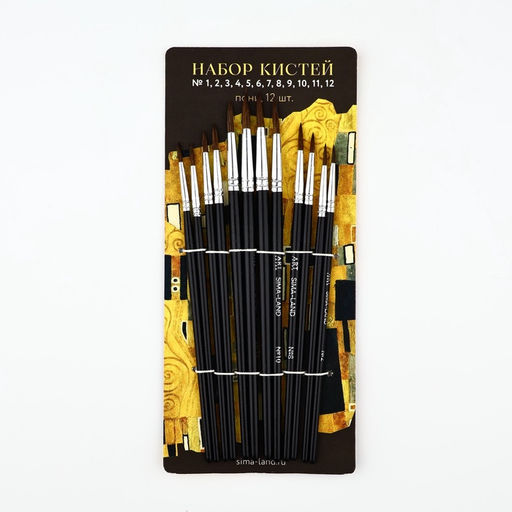 • Кисть для рисования, пони круглые, набор 12 шт. № 1.2,3.4,5.6,7.8,9.10,11.12«Климт»
