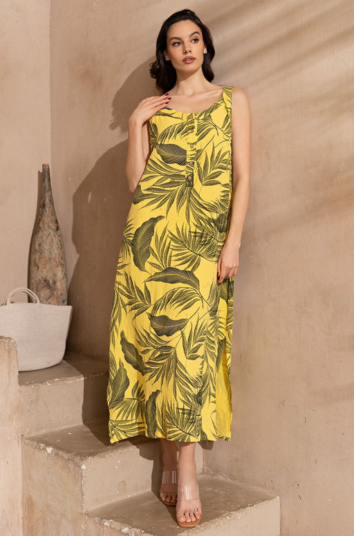 Длинный сарафан Mia-Amore свободного силуэта с застежкой на планку по верхней части полочки. Изделие выполнено из принтованного муслина. По низу боковых швов обработаны разрезы для свободы движения. Состав:100% хлопок