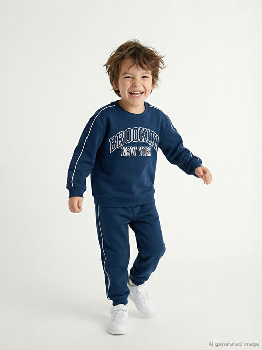 New York Bask?l? Erkek ?ocuk Kal?n Sweatshirt ve E?ofman Alt?