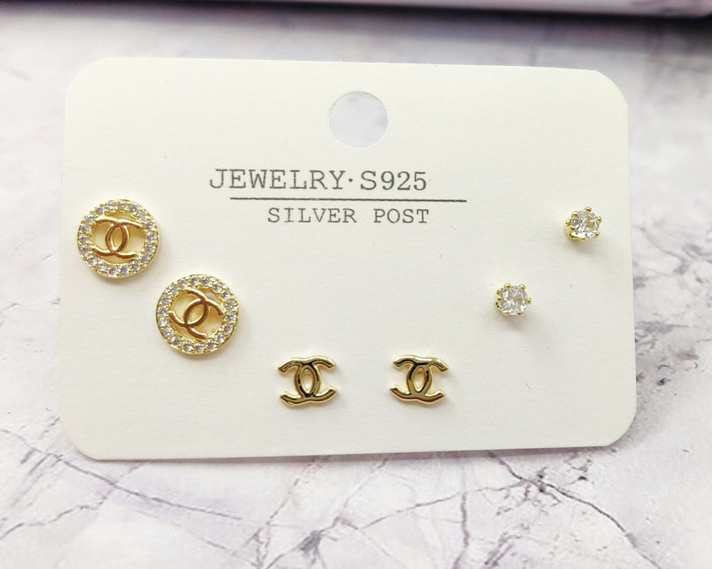 В комплект входят 6 гвоздиков которые можно одевать ассиметрично,на одно ухо, или сочетать между собой в зависимости от Вашего образа.