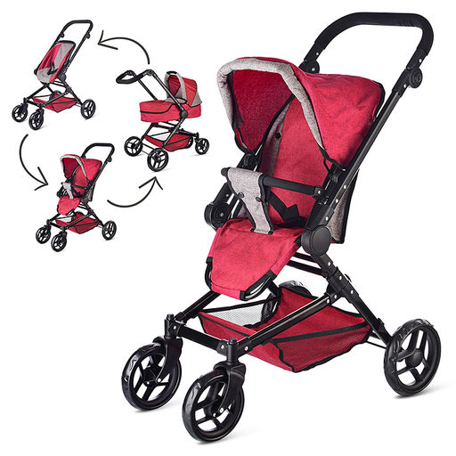 Коляска-трансформер для кукол цвет красно-серый, в коробке