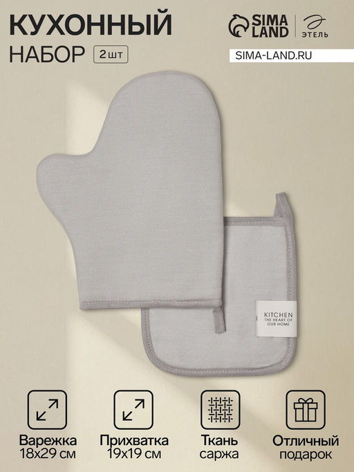 • Кухонный набор «Этель» Kitchen light gray: прихватка, варежка-прихватка, светло-серый