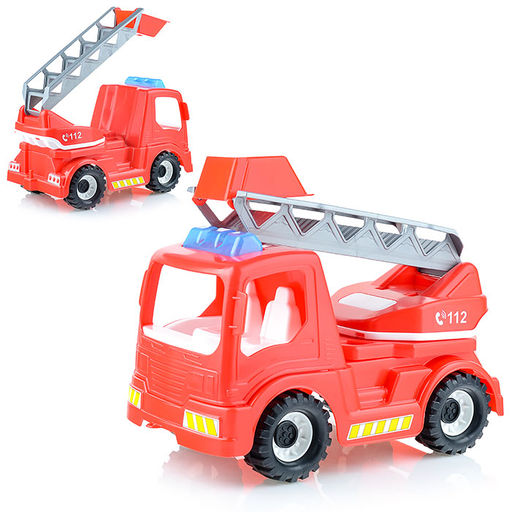 Игрушка Автомобиль "Батыр" пожарная машина – пластмассовая игрушка, которую можно использовать как на улице, так и в доме. Машина оснащена двумя парами колес на двух металлических осях. Имеет подвижную пожарную лестницу на поворотной платформе.