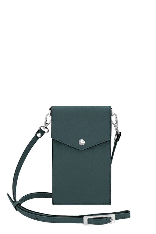 Сумка для мобильного телефона регулируемым ремнем через плечо. Внутри сумки большое отделение для мобильного телефона. На передней стенке под клапаном два кармана, один для для пластиковых карт и второй для документов. На задней стенке карман для пластиковых карт. Идеальный вариант для прогулок и походов в магазин, компактная и стильная сумка через плечо для телефона и документов.