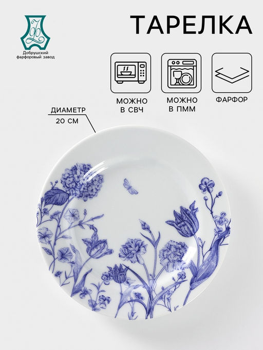 Выпускаемая продукция ЗАО Добрушский фарфоровый завод является высококачественной, экологически чистой, соответствует требованиям международных и европейских норм.Изделия из фарфора бывают настолько тонки, что через них просматривается солнечный свет. Несмотря на всю утончённость, вся фарфоровая посуда наделена особой прочностью.Преимущества:Экологически чистая посуда изготавливается из особых сортов редкой белой глины, которая также используется в косметологии.Прочность.Изящный внешний вид.Фарфор дольше удерживает теплоту ваших напитков и блюд, что позволит раскрыть аромат и вкус продукта.Эксплуатация:Бережное обращение.Избегайте резкой смены температуры, чтобы поверхность не потрескалась.Красивая фарфоровая посуда чувствительна к абразивным порошкам и грубым щеткам, используйте мягкие гелевые средства и поролоновые губки. Набор: Нет. Форма: Круглая. Диаметр, см: 20. Тематика: Цветочно-растительная. Рисунок: Да. Тематика праздника: 8 Марта. Вид тарелки: Плоская. Можно мыть в посудомоечной машине: Да. Можно использовать в СВЧ-печи: Да. Текстура: Гладкая. Особенности: Деколь. Матовая поверхность: Нет. Для горячего: Да. Примечание: В зависимости от содержания каолина (белой глины) поверхность посуды может иметь сероватый оттенок.. Примечание: Допустимое отклонение в диаметре 5 мм. В связи с особенностью производства.. Примечание: Для изделий, изготавливаемых в производстве, допускаются предельные отклонения от номинальных по: диаметру, длине, высоте 3%, ёмкости 10%, весу 10%..