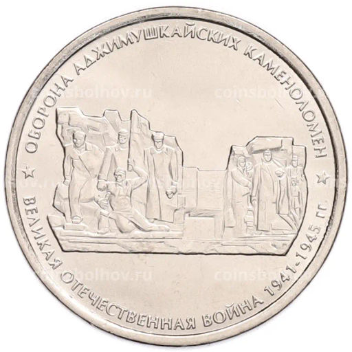 • Монета 5 рублей 2015 года ММД Великая Отечественная война  Оборона Аджимушкайских каменоломен