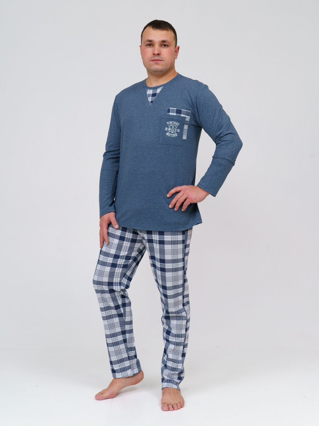 Артикул: Пижама мужская Олимп дл.рукав св.серый/клетка