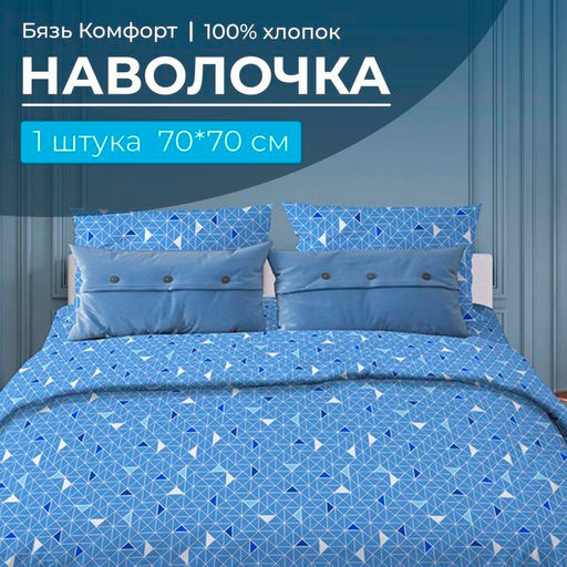 Артикул: Наволочка 70*70 см, бязь "Комфорт" (Треугольники, светло-синий)