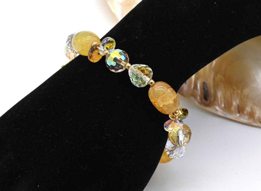 • Браслет с цирконом и агатом Вены дракона цв.желтый, 17см