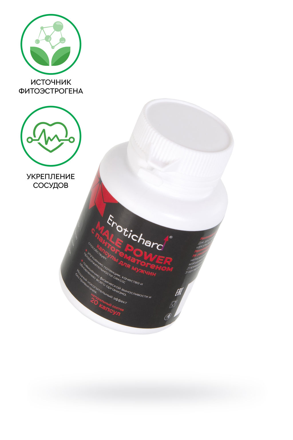 Описание товара Биогенный комплекс растительных экстрактов Erotichard® male power в капсулах с пантогематогеном это натуральный, негормональный продукт, направленный на нормализацию работы мужской репродуктивной системы.
