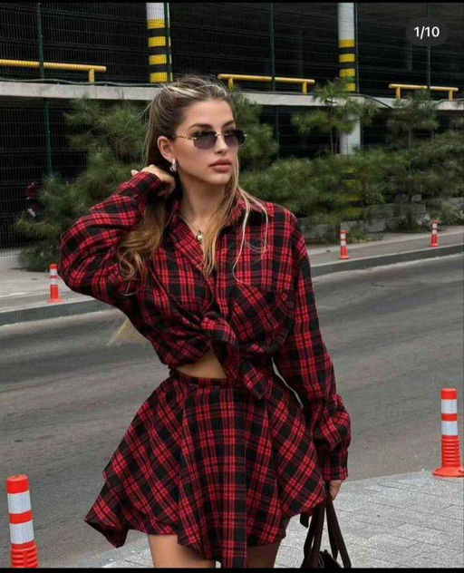 K12596 Костюм: рубашка и юбка OVER SIZE, хлопок КРАСНЫЙ