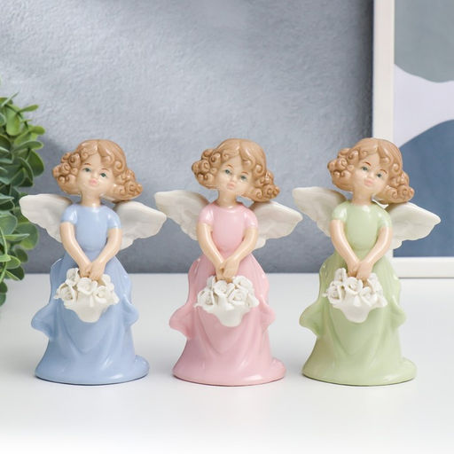 Фигурка керамика «Ангелочек-девочка с корзинкой белых роз», 14×5×8 см, МИКС