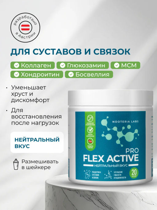 Flex Active PRO — это полноценный рабочий комплекс с эффективными дозировками и доказанными формами — именно для результата, а не «для галочки».
