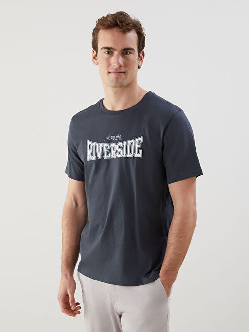 • Bisiklet Yaka K?sa Kollu Bask?l? Penye Erkek Ti??rt