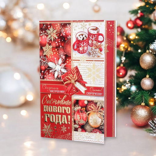 • Цена за 10 шт. Открытка «Счастливого Нового Года!» конгрев, тиснение, 12.5 х 19 см