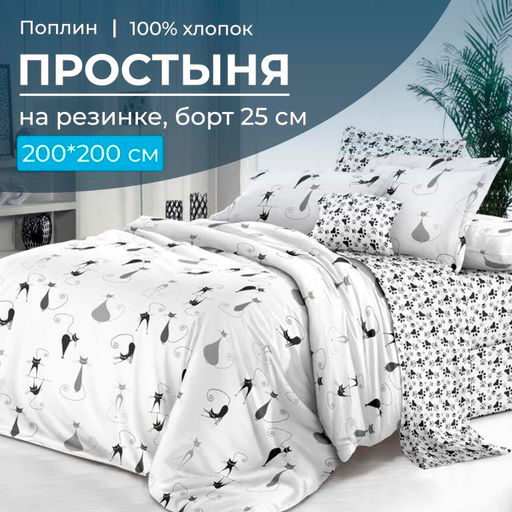 Артикул: Простыня на резинке 200*200 см, поплин, борт 25 см (Кошечка (компаньон))