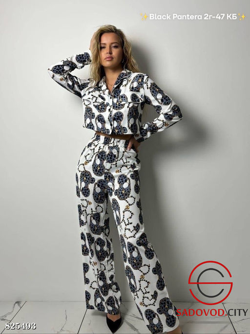 • Костюм женский брюки и укорочённая рубашка с принтом