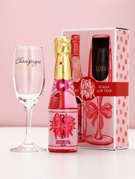 Подарочный набор GRL Power, гель для душа и бокал для шампанского, Чистое Счастье