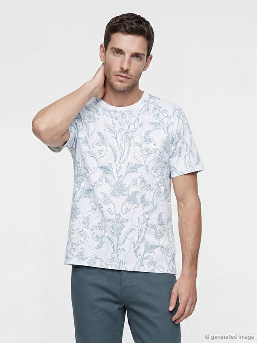 • Bisiklet Yaka Desenli Erkek Ti??rt