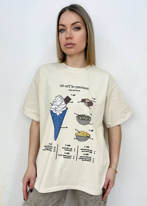 K12440 Футболка OVER SIZE (плотный хлопок) СВ_БЕЖЕВЫЙ