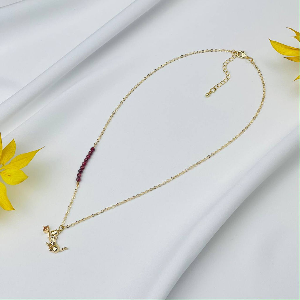 • Колье на цепочке с камнем Гранат(Пироп) и подвеской Кошка
